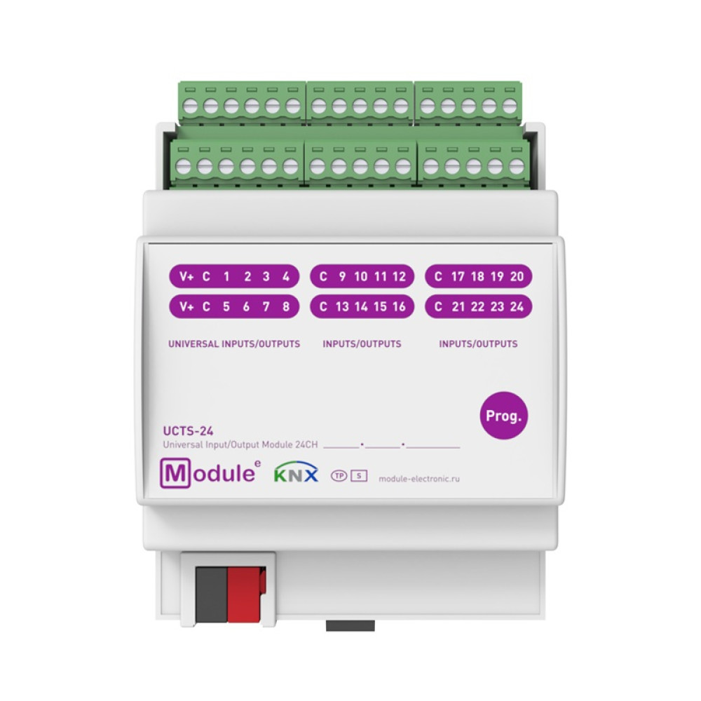 Гибридный модуль входов/выходов UCTS-24 предназначен для организации взаимодействия оборудования различного типа в системах автоматики здания согласно стандарту KNX. Устройство поддерживает широкий спектр цифровых и аналоговых интерфейсов, обеспечивая простую интеграцию приборов освещения, отопления, вентиляции и кондиционирования воздуха. Благодаря продуманному дизайну и компактным размерам, монтаж модуля возможен даже в ограниченных пространствах электрощитов и распределительных шкафов.