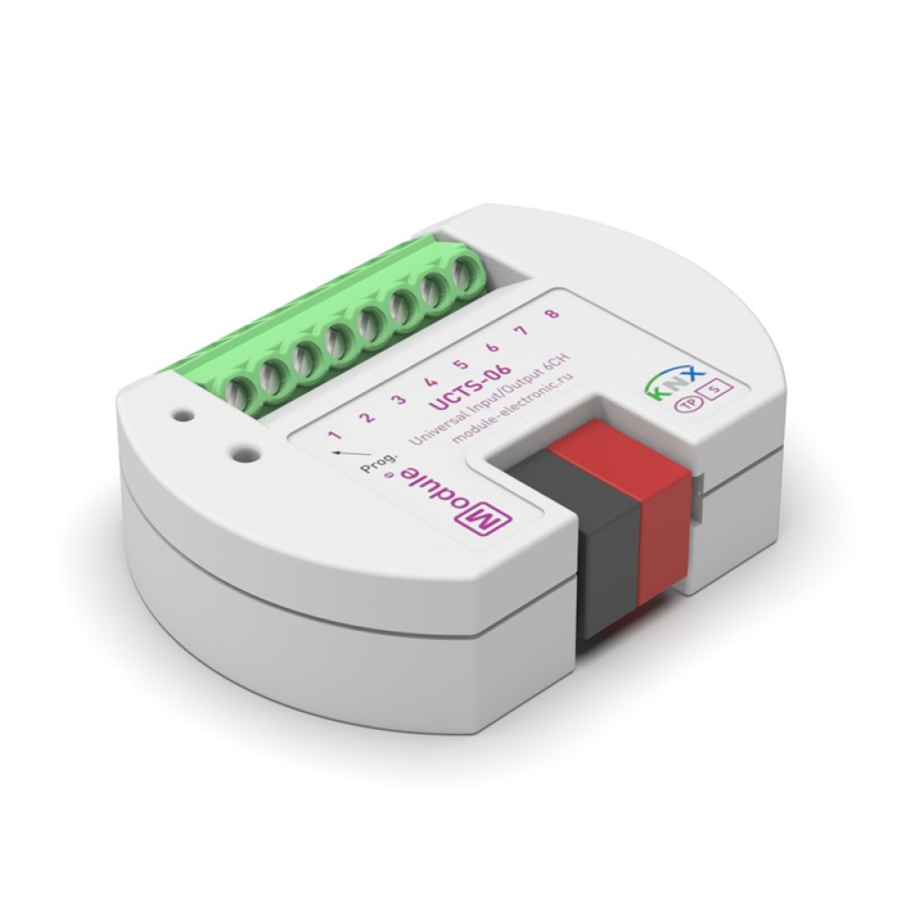 Гибридный модуль входов/выходов Module Electronic UCTS-06 mini — это универсальное устройство, которое сочетает в себе функции ввода и вывода с поддержкой термоконтроля. Он предназначен для преобразования различных входных сигналов, таких как кнопки, выключатели, реле или датчики, в управляющие телеграммы для шины KNX. Кроме того, модуль позволяет отображать состояние телеграмм с помощью маломощных индикаторов, таких как светодиоды, что делает его удобным инструментом для интеграции в умный дом.